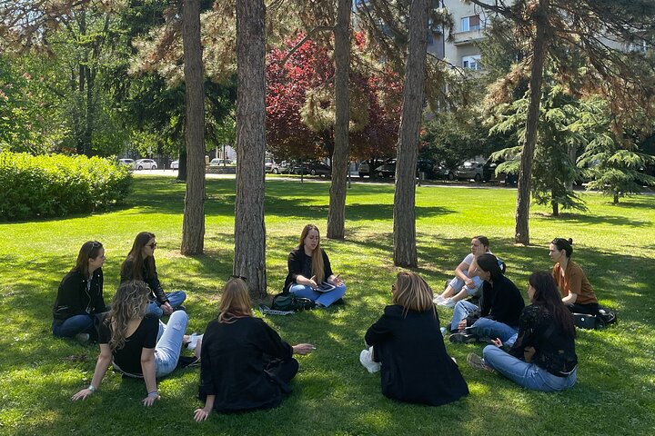 In this part you will be visiting the monument of Nadezhda Petrovic, the Serbia's most famous expressionist and fauvist female artist. Then our guide will offer you to sit on the lawn in a circle. She will share some archival photographs that depicted well-known anti-war actions organised by Women in Black in the early 1990s that took place in Pionirski park. The park is also near by the House of the National Assembly of the Republic of Serbia in front of which one of the iconic scenes happened during the anti-war protests when a tank was parked in front of the building.