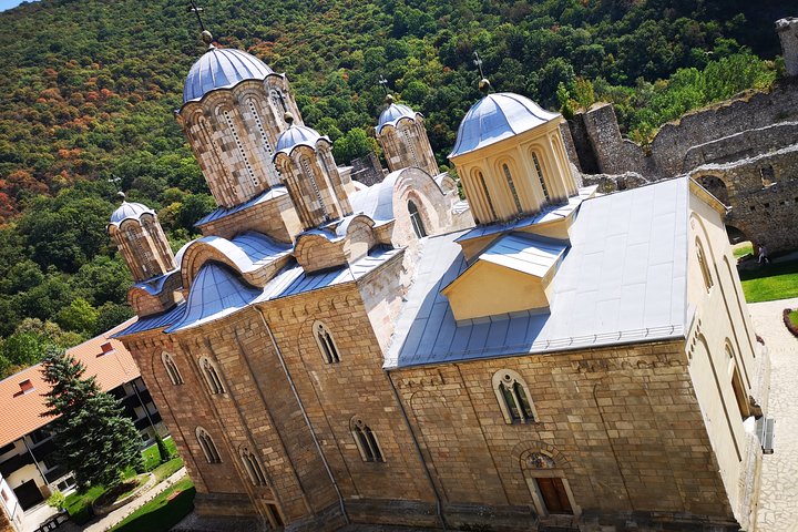 Your tour begins with a pick-up from your accommodation in Belgrade at 8:30 am, where you'll be comfortably transported in a minivan as your expert guide shares fascinating tales about Serbia's medieval past. As you wind through the rolling hills of Šumadija, you'll soon find yourself in the lush, picturesque Resava River gorge, where the majestic Manasija Monastery awaits.